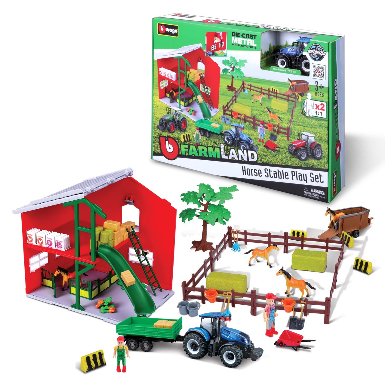 Cooler Pferdestall von Bburago mit hochwertigem Traktor aus Zinkguss und vielen Figuren und Zubehör.