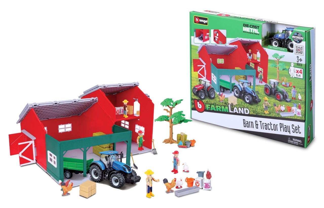 Coole Scheune von Bburago mit hochwertigem Traktor aus Zinkguss und vielen Figuren und Zubehör.