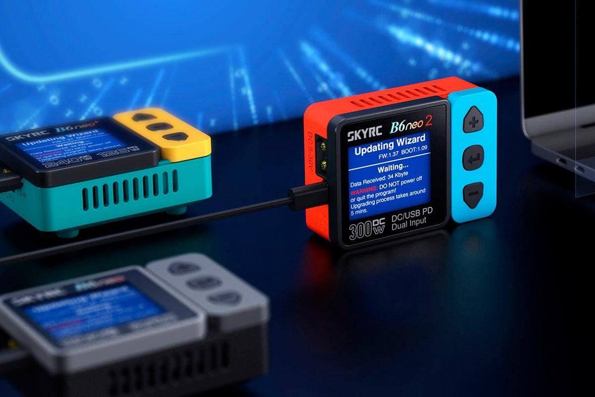 Das SkyRC B6neo 2 300W Ladegerät ist ein ultrakompaktes und leistungsstarkes Multifunktions-Ladegerät für nahezu alle gängigen Akkutypen im RC-Bereich. Mit bis zu 300W Ladeleistung, integriertem Balancer und moderner USB-C Stromversorgung (PD/QC) ist es der perfekte Begleiter für unterwegs und im Pit.