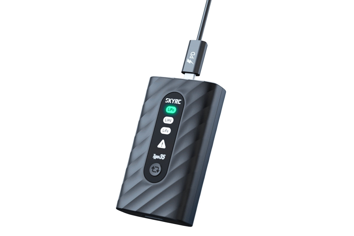 Das SkyRC Type35 35W Ladegerät ist ein kompaktes und einfach zu bedienendes USB-C LiPo Ladegerät für 2–4S Akkus. Perfekt für Einsteiger, RTR-Sets oder als mobiles Ladegerät unterwegs, wenn kein großes Profi-Ladegerät benötigt wird.